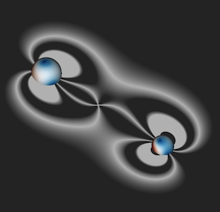 Animation of the gravitational waves emitted from the binary throughout the inspiral and merger. Use Strain code with mathematica scripts to generate this.